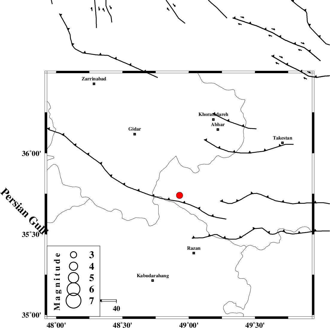 SOLTANIYEH_F (Length: 119 km) , Distance to epicenter: 34 km | |