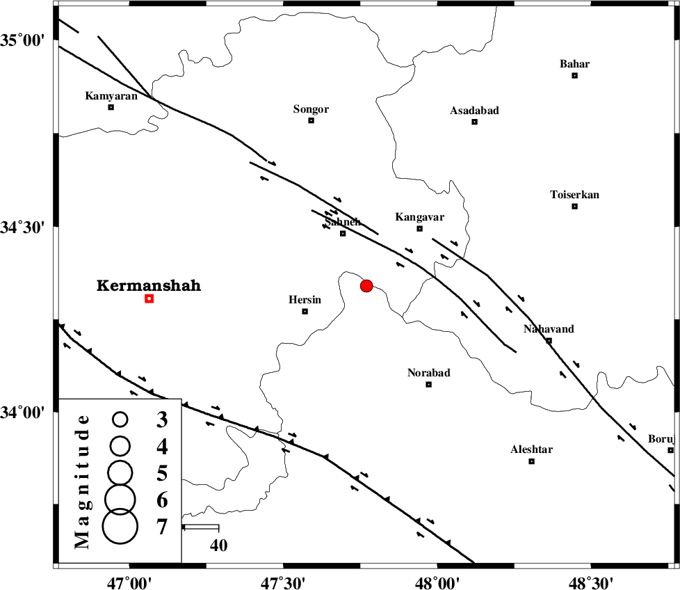 NAHAVAND_F (Length: 102 km) , Distance to epicenter: 24 km | |