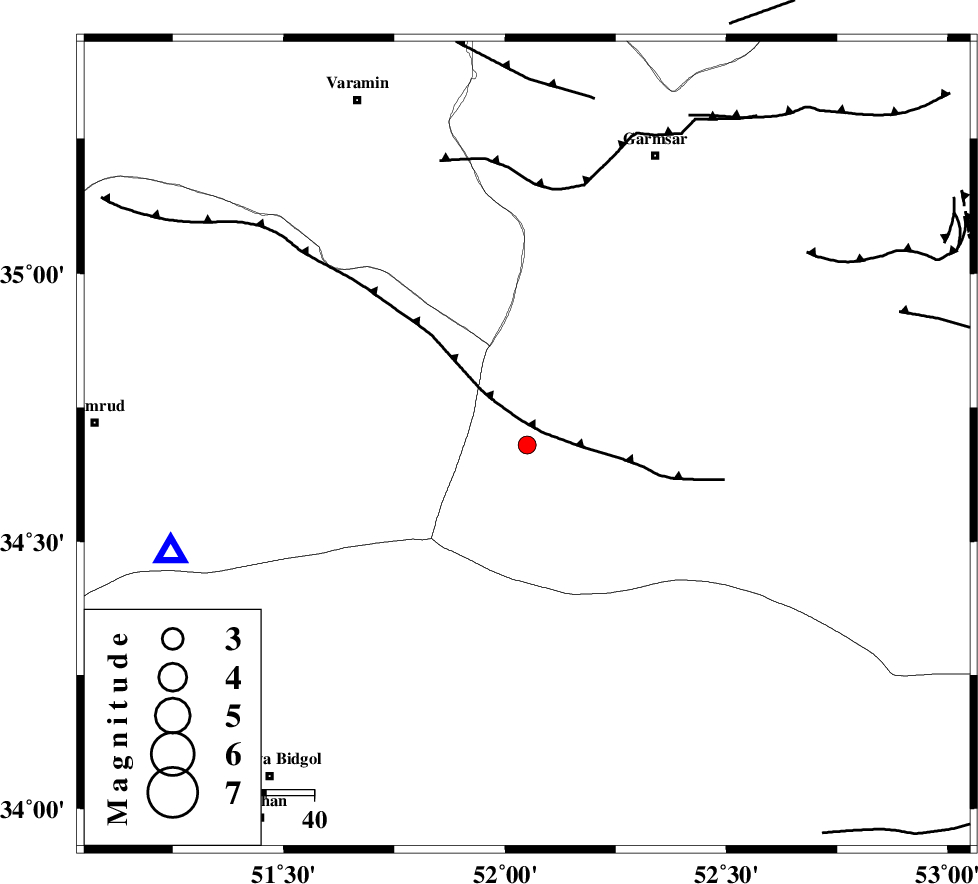 GARMSAR_F (Length: 77 km) , Distance to epicenter: 53 km | |