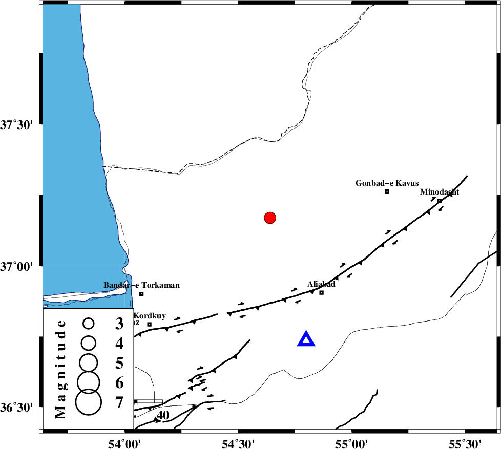 KHAZAR_F (Length: 523 km) , Distance to epicenter: 34 km | |
