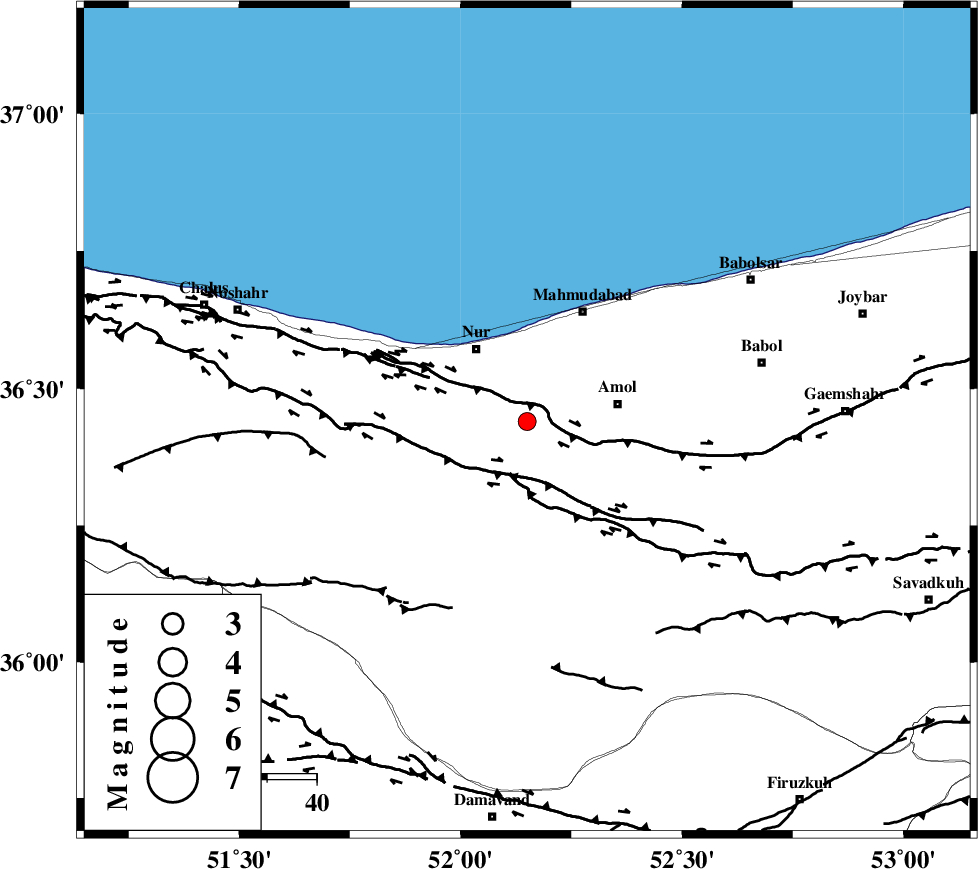 N_ALBORZ_F (Length: 360 km) , Distance to epicenter: 13 km | |