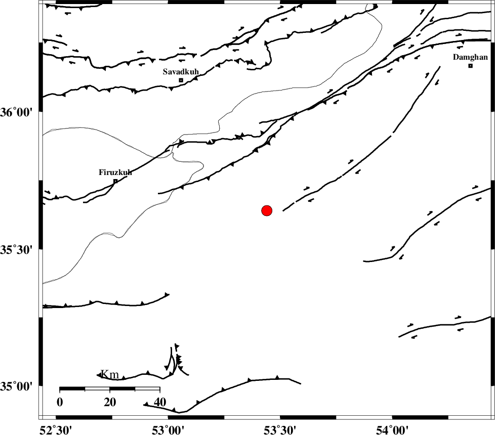 KUH_E_GACHAB_F1 (Length: 53 km) , Distance to epicenter: 63 km | |