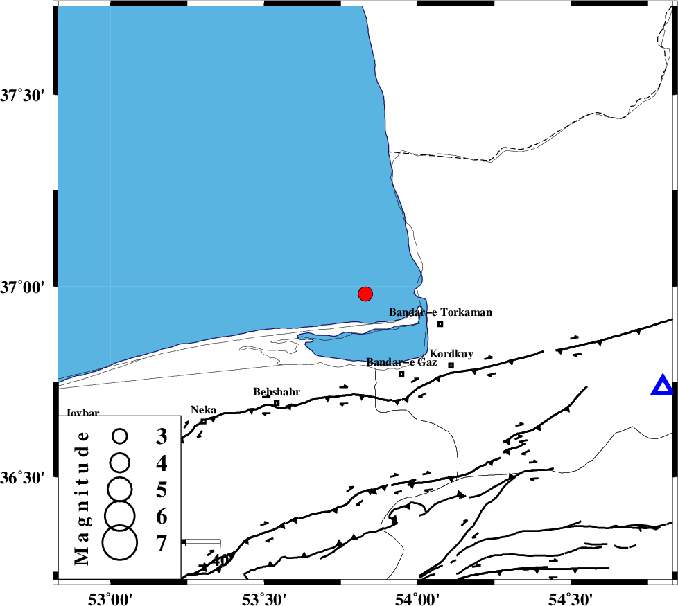 KHAZAR_F (Length: 523 km) , Distance to epicenter: 29 km | |