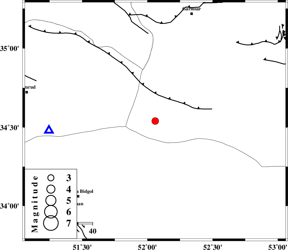 GARMSAR_F (Length: 77 km) , Distance to epicenter: 69 km | |