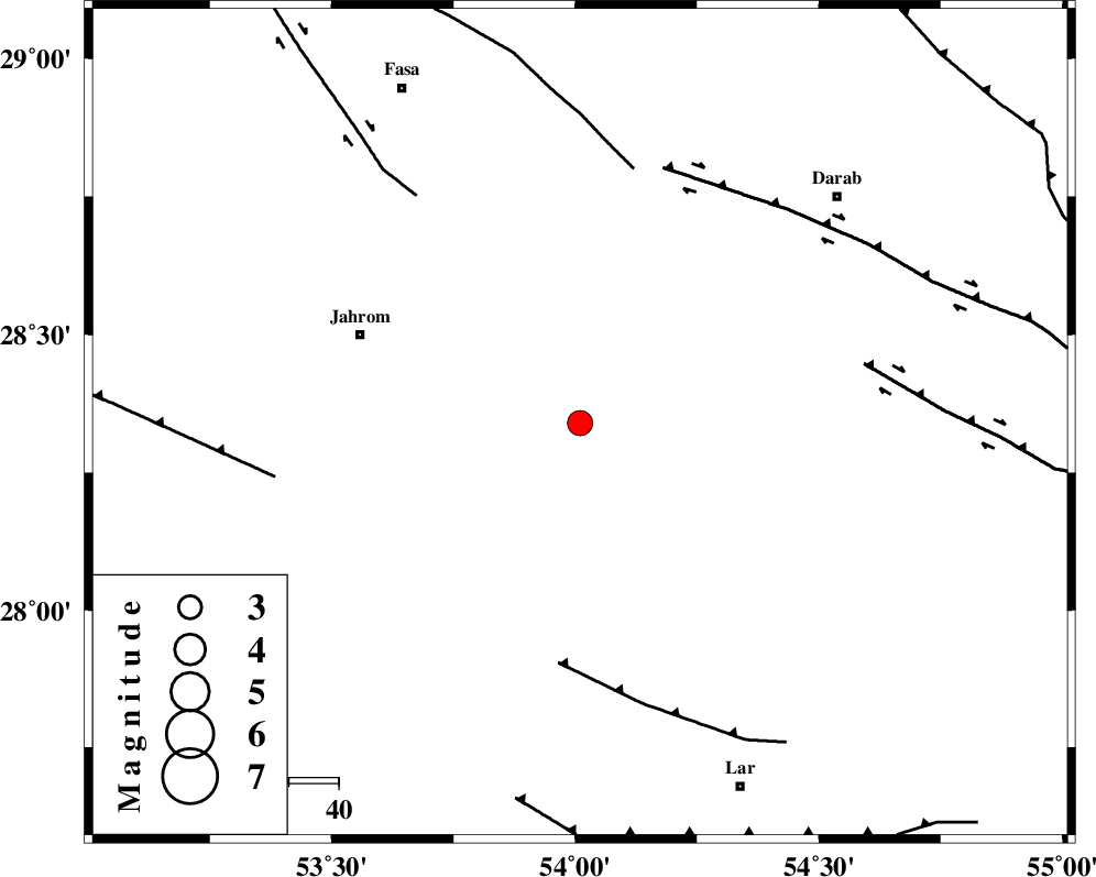BAKHTEGAN_F (Length: 94 km) , Distance to epicenter: 52 km | |
