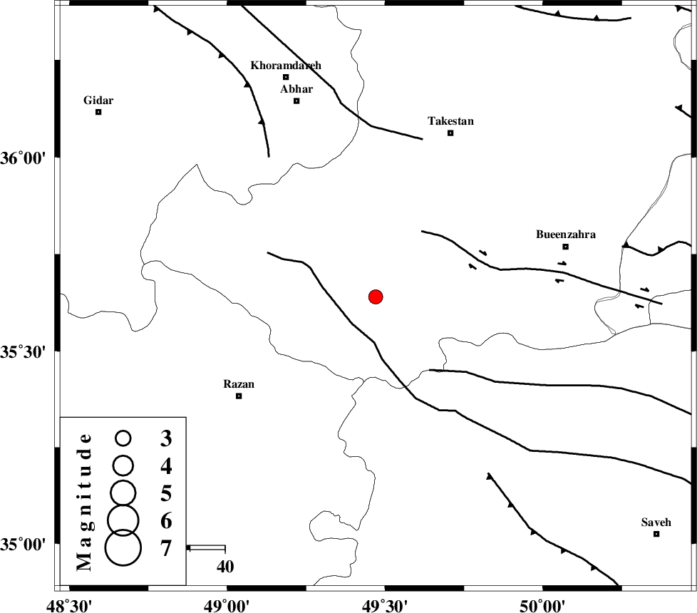 KUSHK_E_NOSRAT_F (Length: 230 km) , Distance to epicenter: 10 km | |