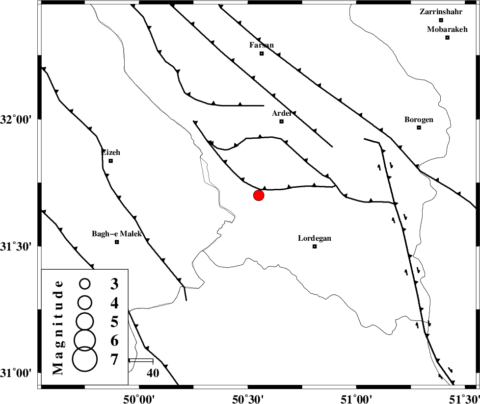 | SABZKUH_F (Length: 67 km) , Distance to epicenter: 3 km | |