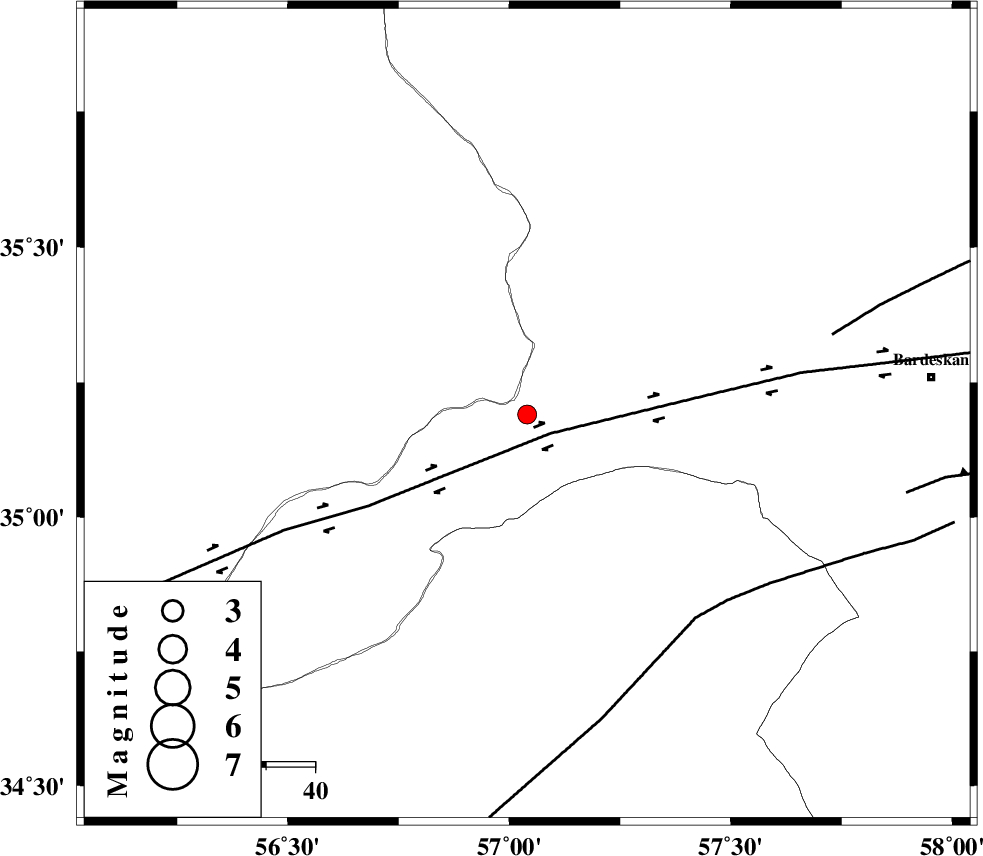 | DORUNEH_F (Length: 713 km) , Distance to epicenter: 6 km | |