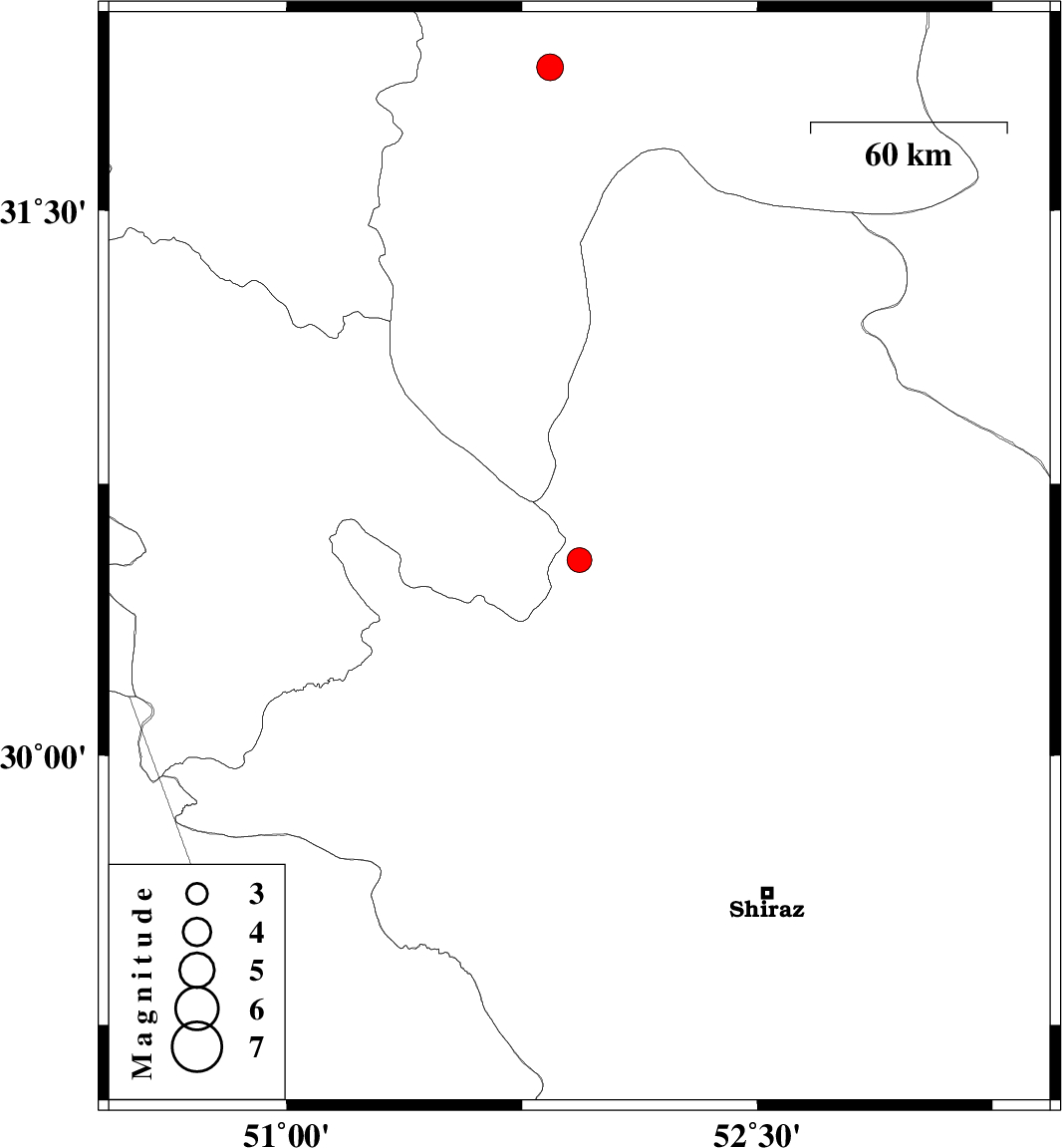 | 2015/07/17 | 01:30:34.9 | 06:00:34.9 | 30.541 | 51.933 | 33 | ML:3.5 | Fars Province, 31 km North of Ardakan | ||