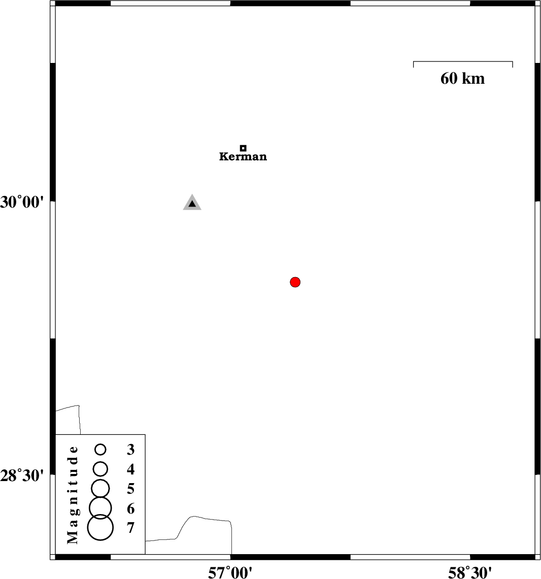 | 2015/07/17 | 19:55:01.3 | 00:25:01.3 | 29.558 | 57.404 | 18 | ML:2.8 | Kerman Province, 87 km South-East of Kerman | ||