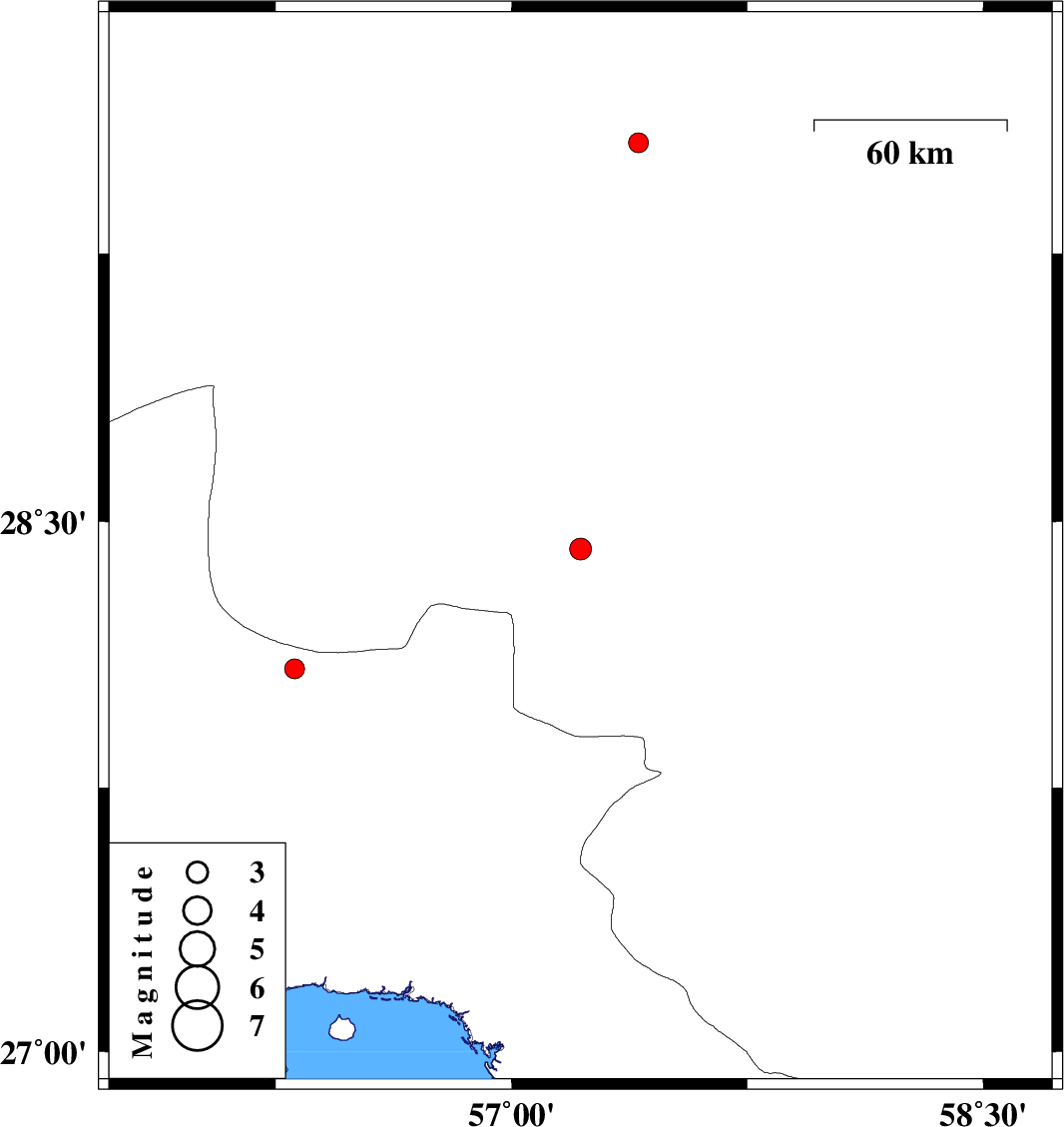 | 2015/07/17 | 19:55:01.3 | 00:25:01.3 | 29.558 | 57.404 | 18 | ML:2.8 | Kerman Province, 87 km South-East of Kerman | ||