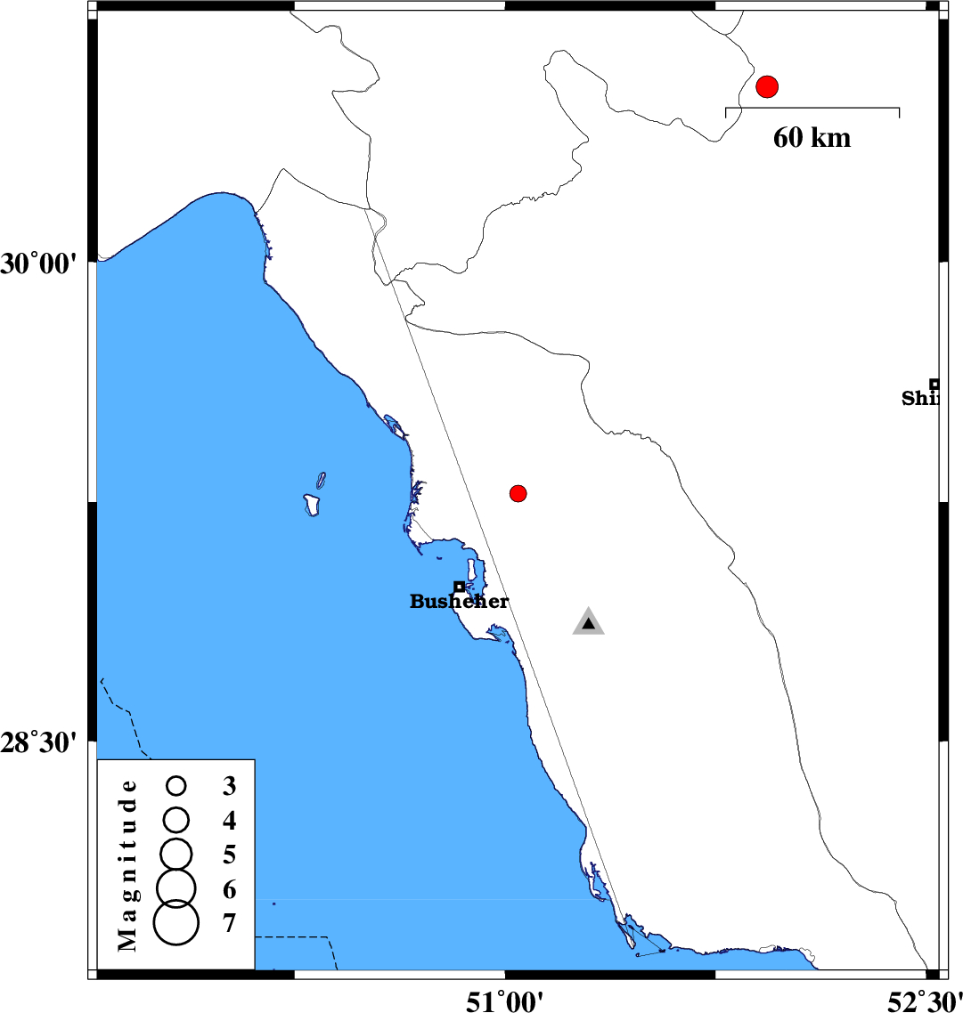 | 2015/07/21 | 22:03:10.6 | 02:33:10.6 | 29.277 | 51.046 | 26 | ML:2.7 | Bushehr Province, 16 km -West of Borazjan | ||