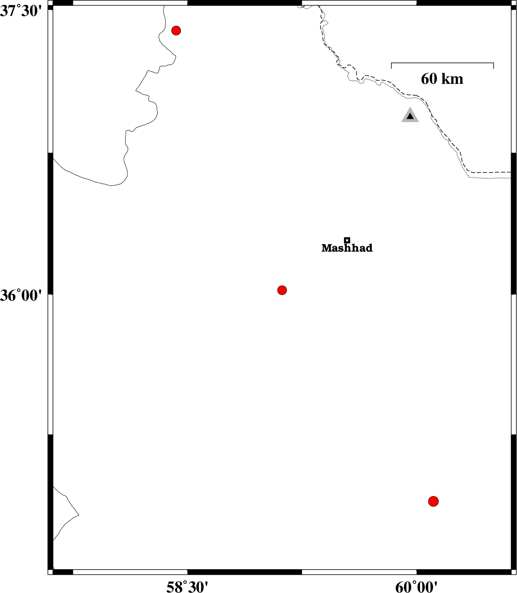 | 2015/06/24 | 19:32:29.6 | 00:02:29.6 | 34.89 | 60.11 | 18 | ML:3 | Khorasan(center) Province, 36 km North of Khaf |