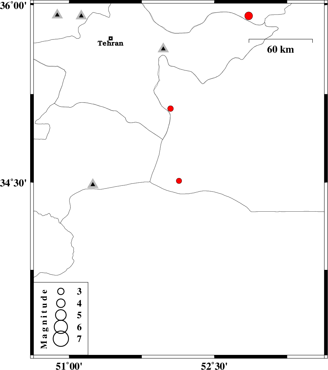 | 2015/07/26 | 09:37:06.8 | 14:07:06.8 | 35.909 | 52.854 | 15 | ML:3.6 | Mazandaran Province, 20 km North of Firuzkuh |