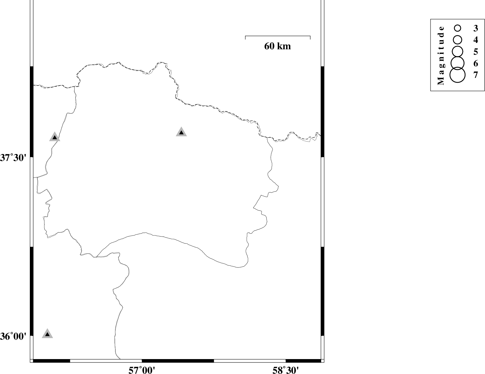 | 2015/08/06 | 06:51:58.9 | 11:21:58.9 | 37.316 | 57.396 | 14 | ML:2.9 | Khorasan(north) Province, 18 km South of Bojnurd | ||