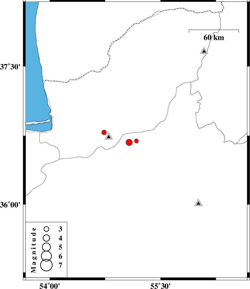 | 2015/08/07 | 05:10:50.6 | 09:40:50.6 | 36.786 | 54.735 | 14 | ML:2.9 | Golestan Province, 18 km South-West of Ali Abad |