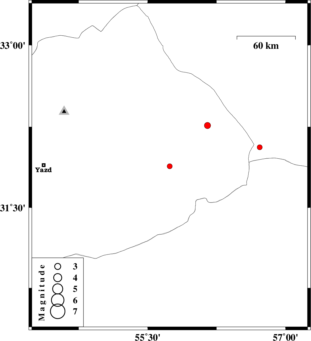 | 2015/08/13 | 08:09:06.5 | 12:39:06.5 | 31.884 | 55.74 | 14 | ML:2.5 | Yazd Province, 45 km North-East of Bafq | ||