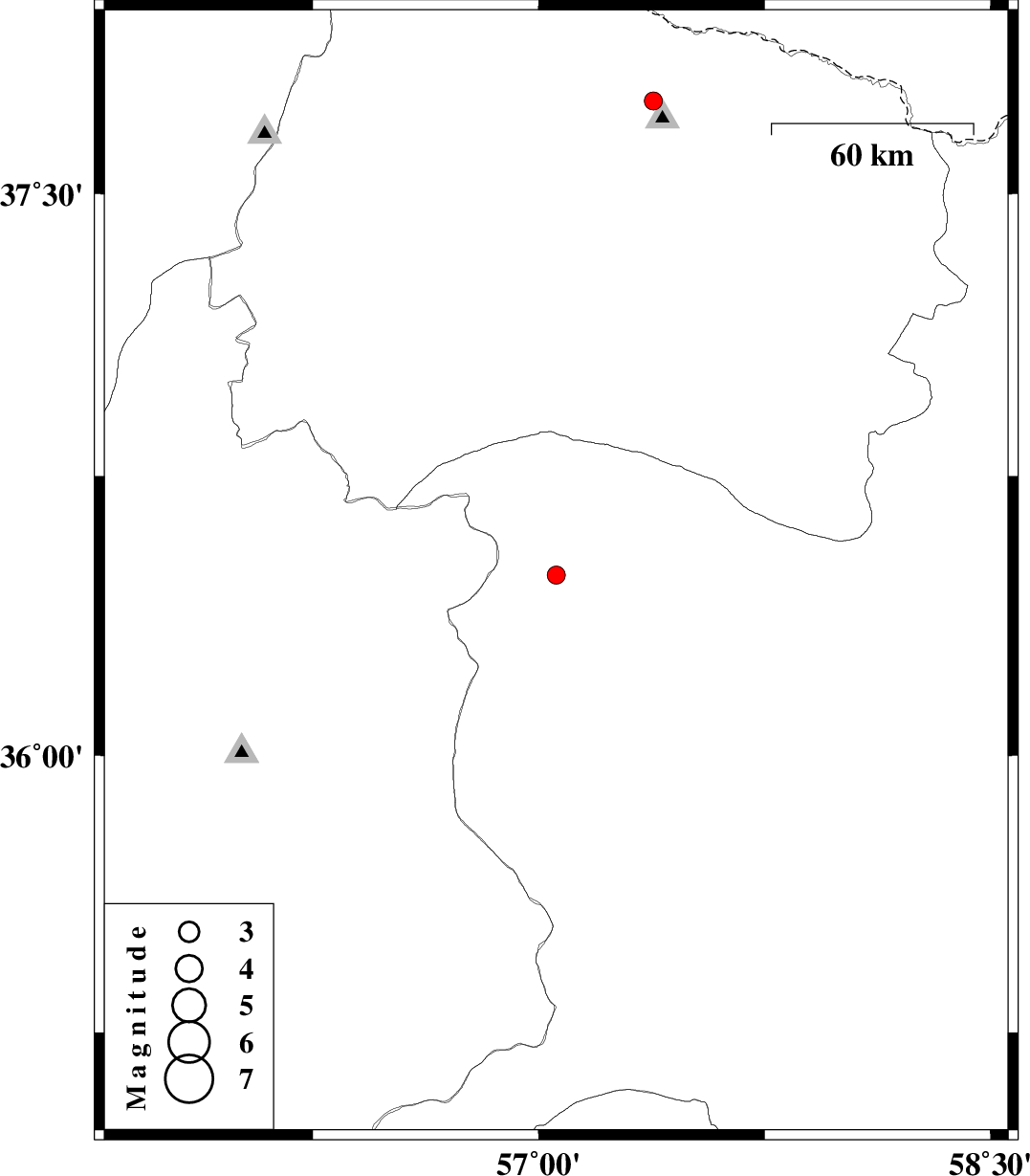 | 2015/08/16 | 03:36:52.1 | 08:06:52.1 | 37.745 | 57.381 | 14 | ML:2.7 | Khorasan(north) Province, 31 km North of Bojnurd |