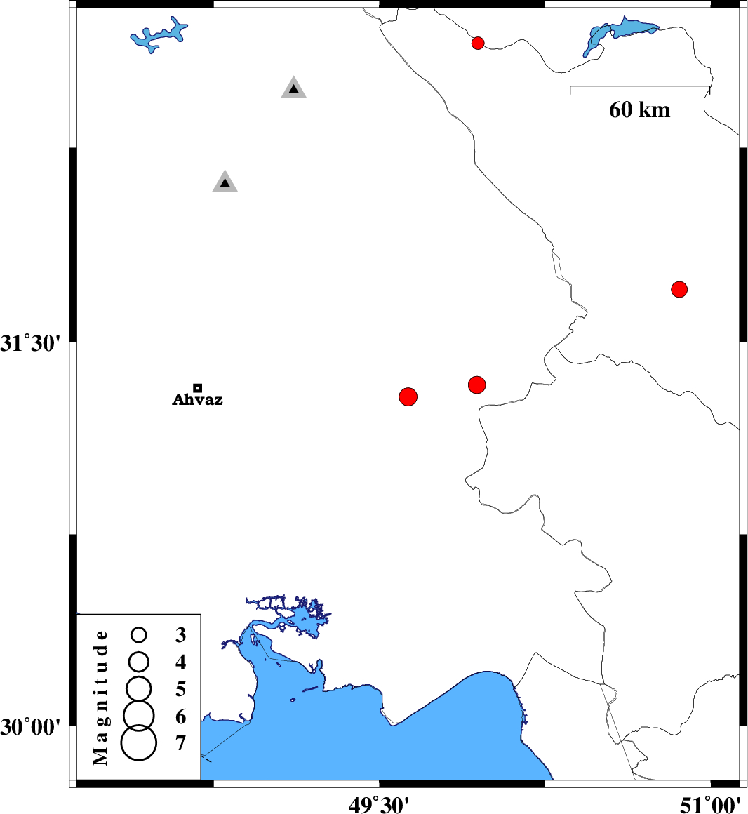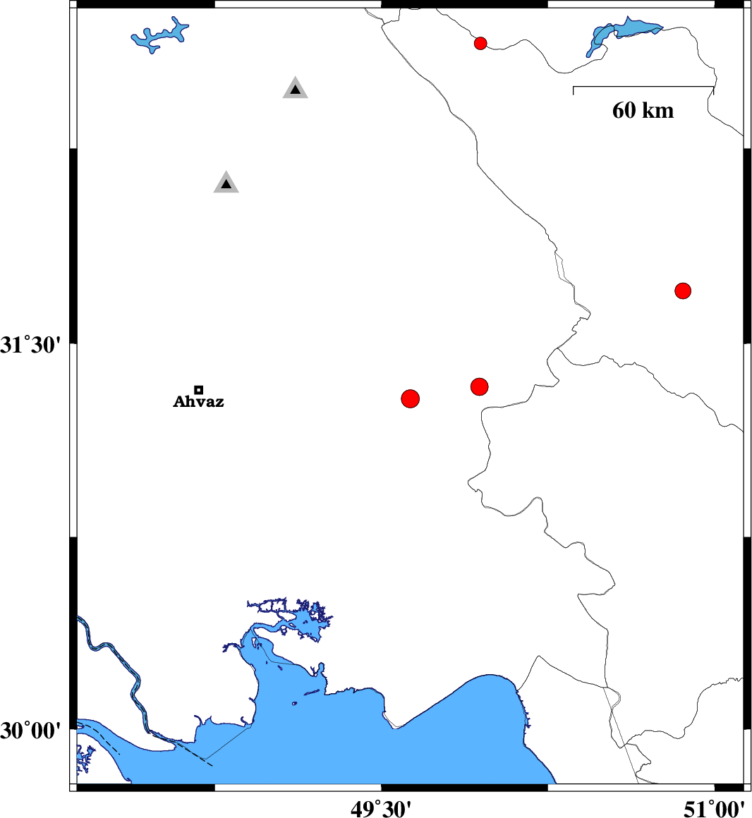 | 2015/08/14 | 22:26:17.0 | 02:56:17.0 | 31.333 | 49.942 | 15 | ML:3.5 | Khoozestan Province, 21 km South of Bagh Malek |