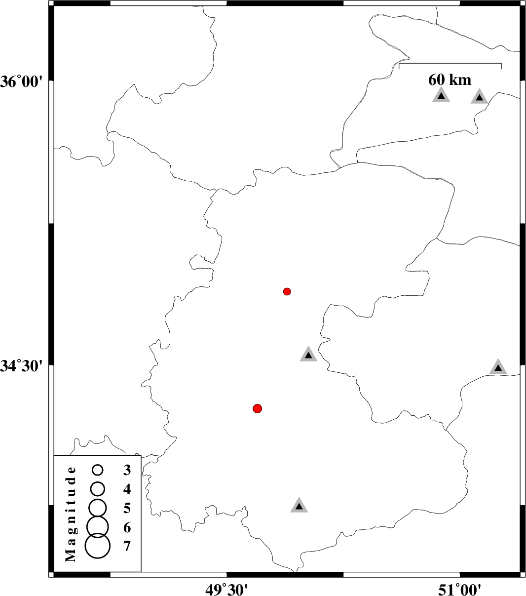 | 2015/08/21 | 04:16:15.5 | 08:46:15.5 | 34.267 | 49.696 | 14 | ML:2.5 | Markazi Province, 20 km North of Arak |