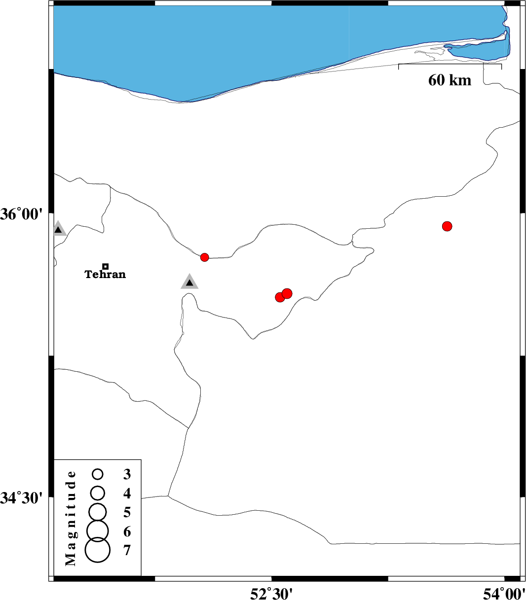 | 2015/08/28 | 00:57:18.2 | 05:27:18.2 | 35.93 | 53.63 | 15 | ML:2.8 | Semnan Province, 45 km North-East of Semnan |