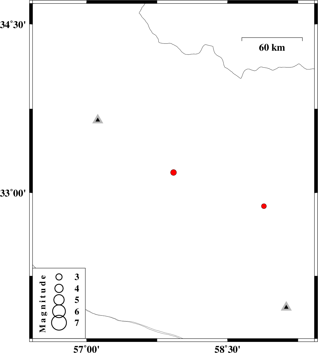 | 2015/09/05 | 00:35:17.2 | 05:05:17.2 | 32.88 | 58.888 | 16 | ML:2.4 | Khorasan(south) Province, 32 km -West of Birjand |