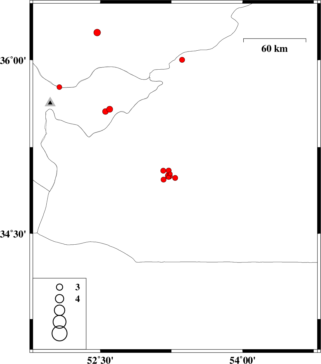 2015/09/05 10:00:20.2 14:30:20.2 34.98353.28915 ML:2.5 Semnan Province, 66 km South-West of Semnan