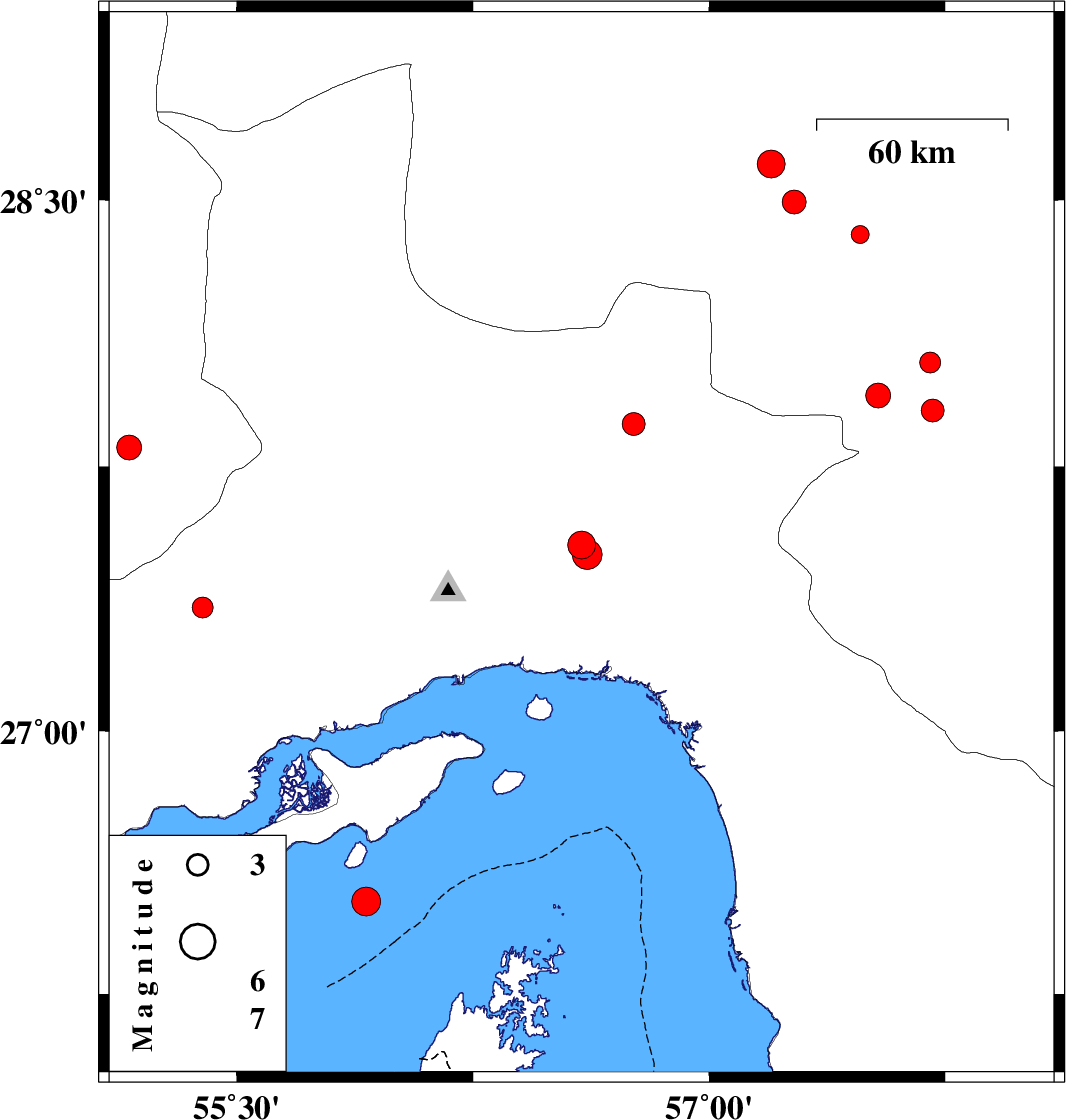 2015/09/04 04:28:26.6 08:58:26.6 27.8756.7614 ML:3.2 Hormozgan Province, 68 km North-West of Dehbarez