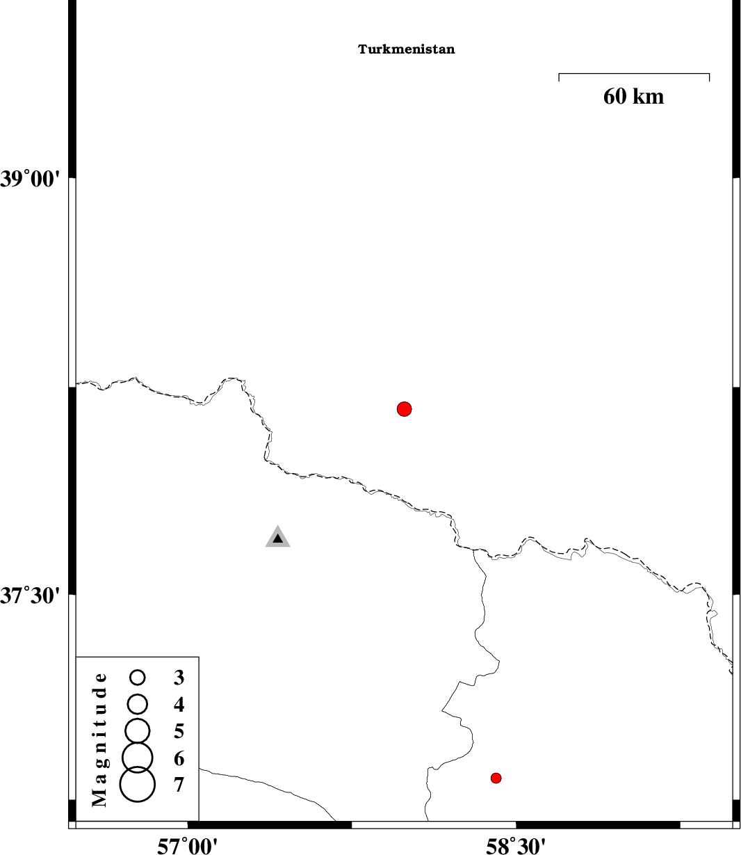 | 2015/09/17 | 10:10:51.9 | 14:40:51.9 | 38.171 | 57.989 | 23 | ML:3 | Turkmenistan, 42 km North-West of Ashgabat | ||