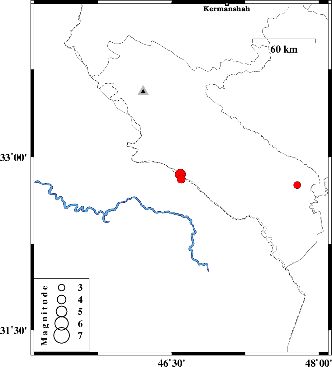 | 2015/09/25 | 09:28:01.7 | 12:58:01.7 | 32.809 | 46.597 | 18 | ML:3.8 | Iraq, 53 km South-East of Mehran | ||