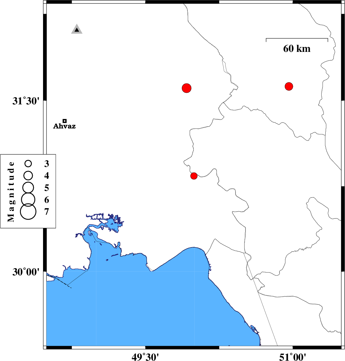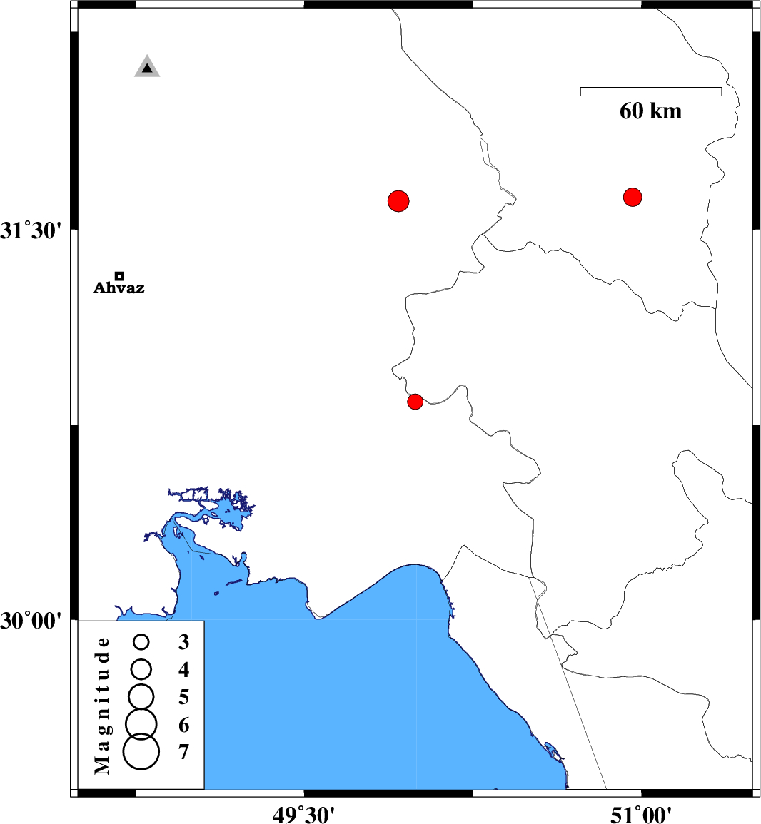 | 2015/09/23 | 08:45:20.9 | 12:15:20.9 | 31.607 | 49.919 | 17 | ML:4.2 | Khoozestan Province, 10 km of Bagh Malek |