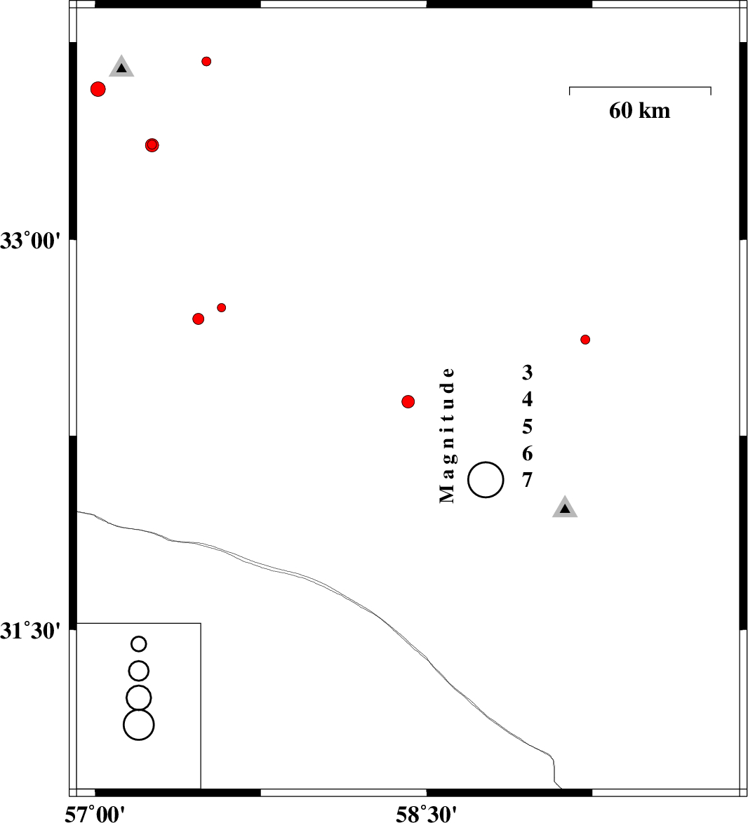 Prel. Rep. | Date | Time(UTC) | Time(Local) | Lat. | Lon. | Depth | Mag. | Region | Waveform |