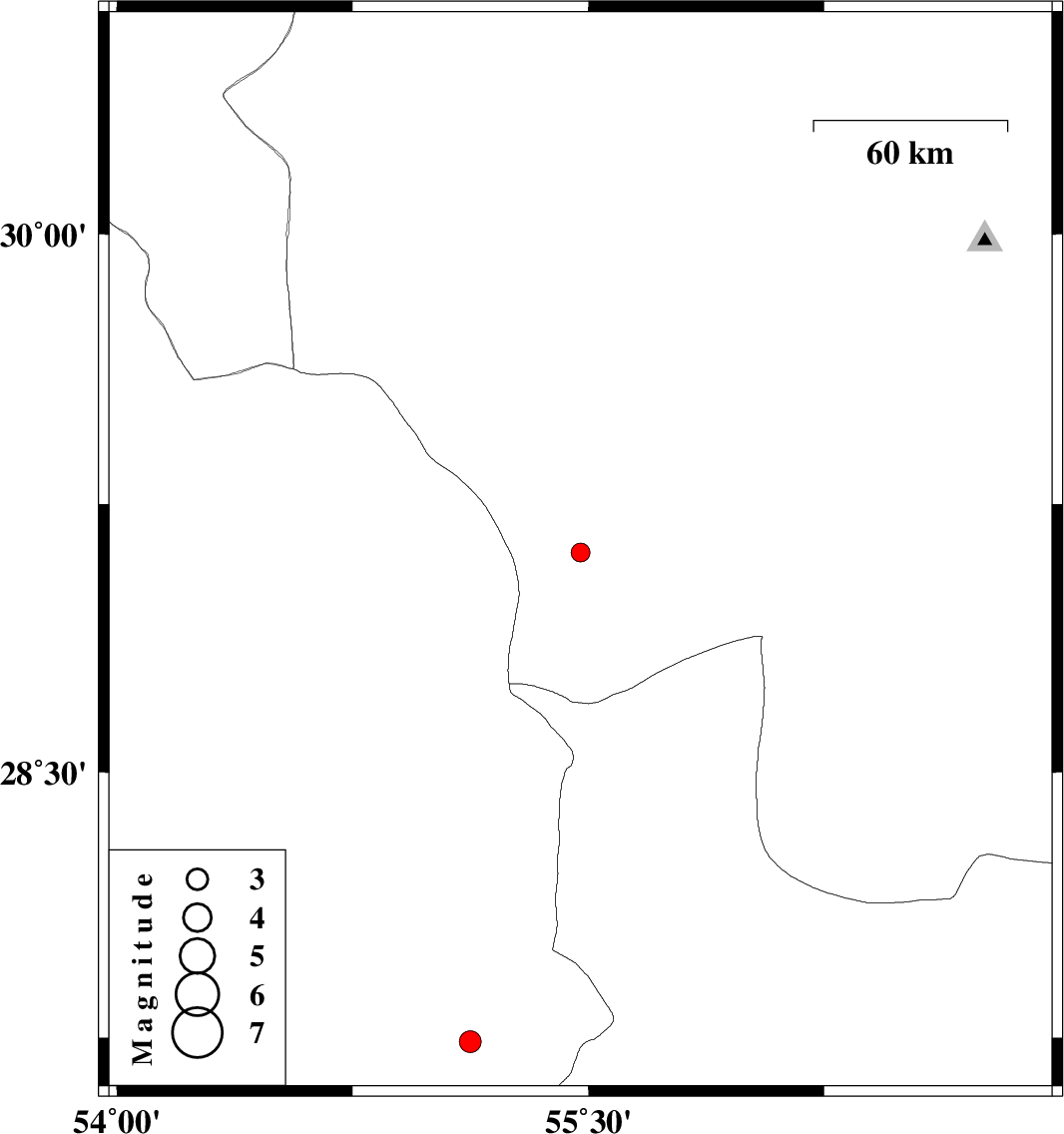 | 2015/10/01 | 12:17:03.3 | 15:47:03.3 | 29.115 | 55.475 | 16 | ML:2.7 | Kerman Province, 42 km South-West of Sirjan | ||