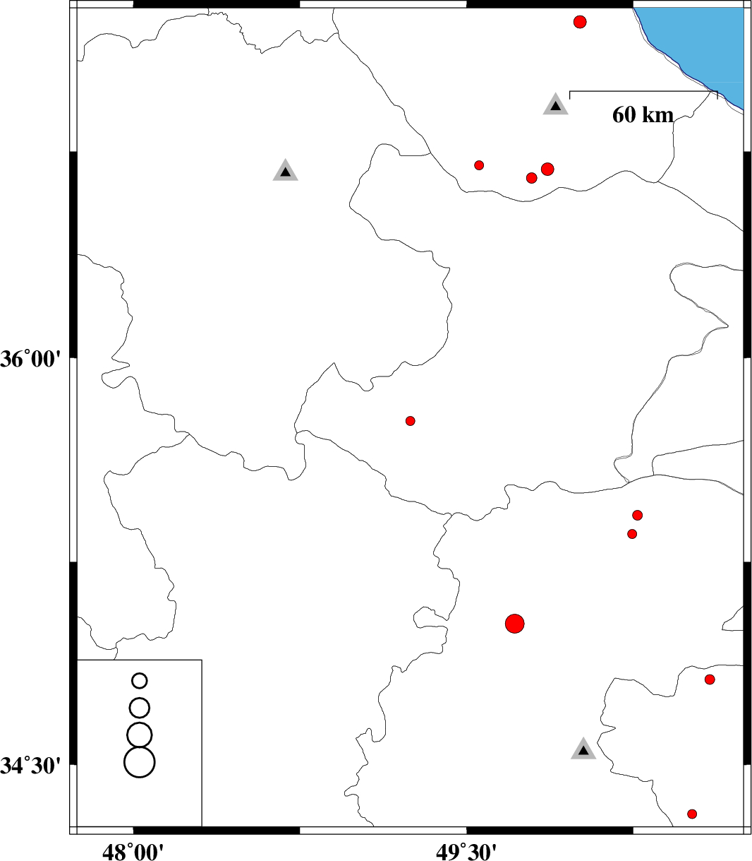 | Prel. Rep. | Date | Time(UTC) | Time(Local) | Lat. | Lon. | Depth | Mag. | Region | Waveform |
