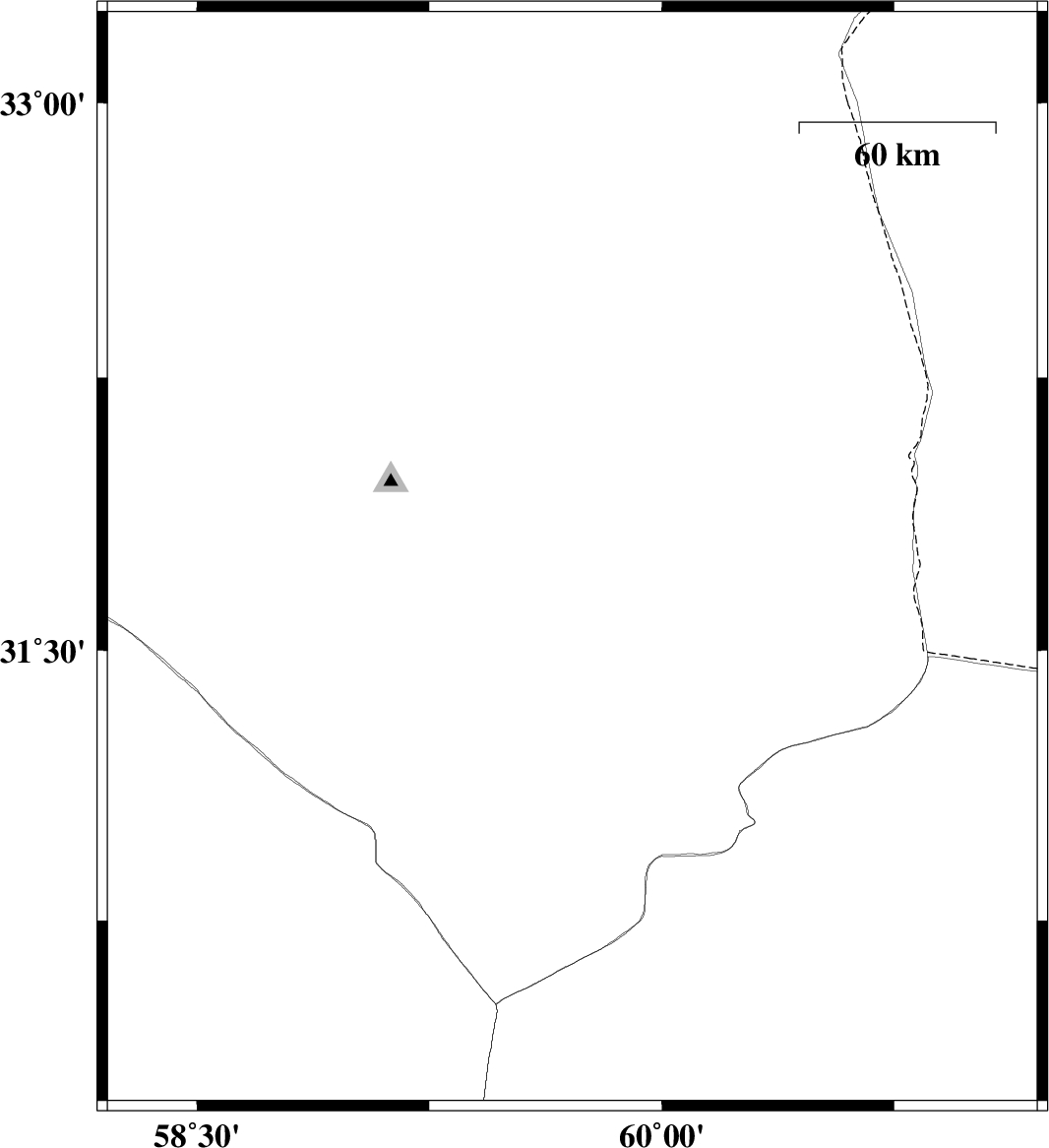 | 2015/09/29 | 02:14:27.7 | 05:44:27.7 | 32.021 | 59.685 | 14 | ML:2 | Khorasan(south) Province, 68 km South-West of Sarbisheh | ||