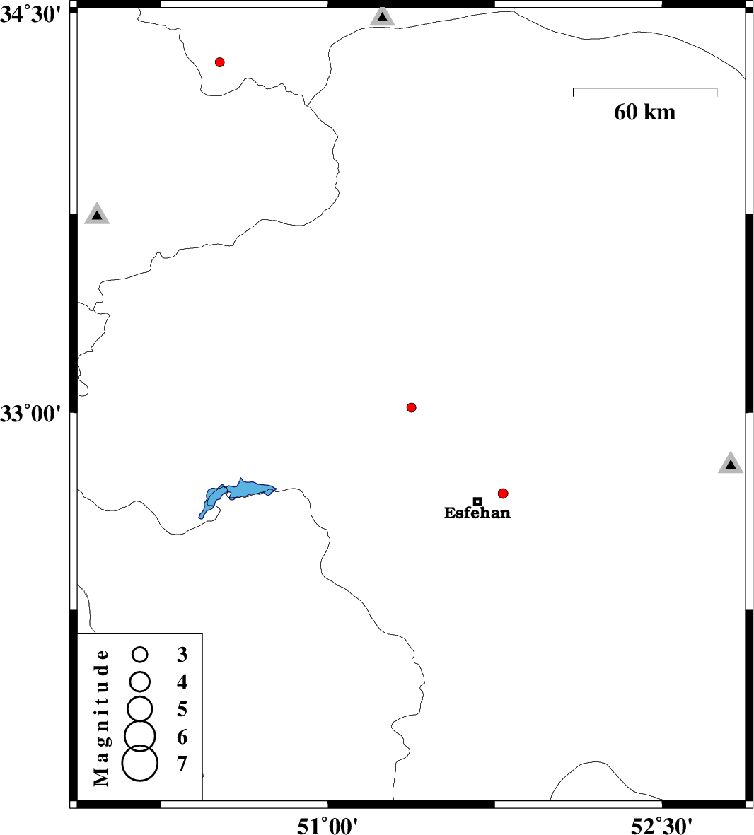 | 2015/09/26 | 06:27:26.6 | 09:57:26.6 | 32.693 | 51.786 | 15 | ML:2 | Esfahan Province, 11 km -East of Esfahan |