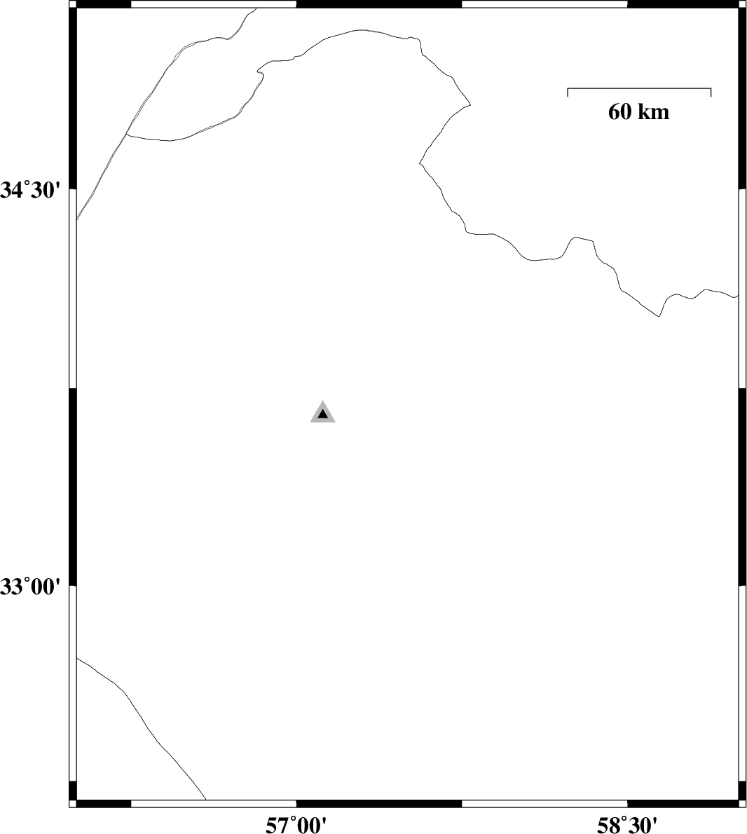 | 2015/09/18 | 19:27:04.5 | 23:57:04.5 | 33.803 | 57.444 | 15 | ML:2.3 | Khorasan(center) Province, 53 km North-East of Tabas | ||