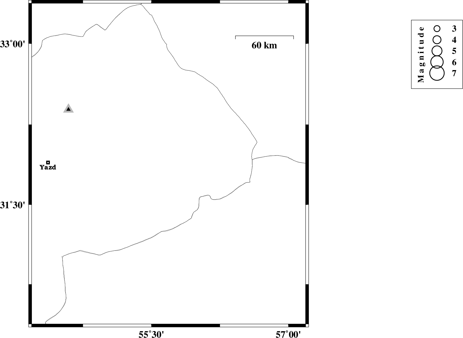 2015/10/14 | 07:29:24.2 | 10:59:24.2 | 31.873 | 55.688 | 14 | ML:2.6 | Yazd Province, 41 km North-East of Bafq | ||