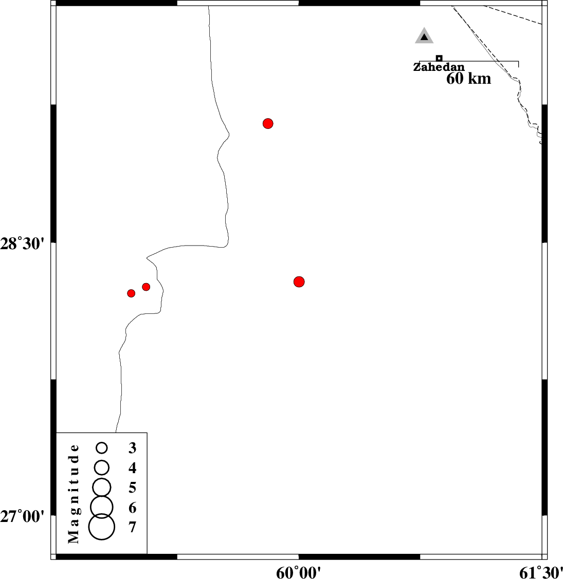 | 2015/09/24 | 12:05:56.9 | 15:35:56.9 | 29.147 | 59.81 | 14 | ML:2.8 | Sistan va Baloochestan Province, 110 km South-West of Zahedan |