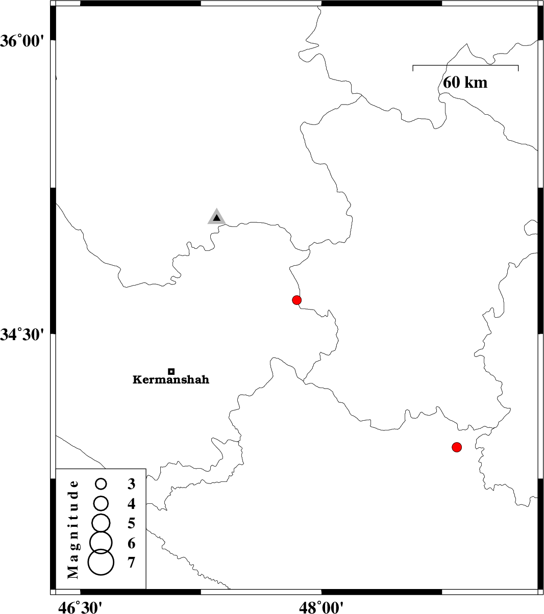 | 2015/10/28 | 00:42:25.4 | 04:12:25.4 | 34.673 | 47.846 | 14 | ML:2.6 | Kermanshah Province, 22 km North of Kangavar | ||