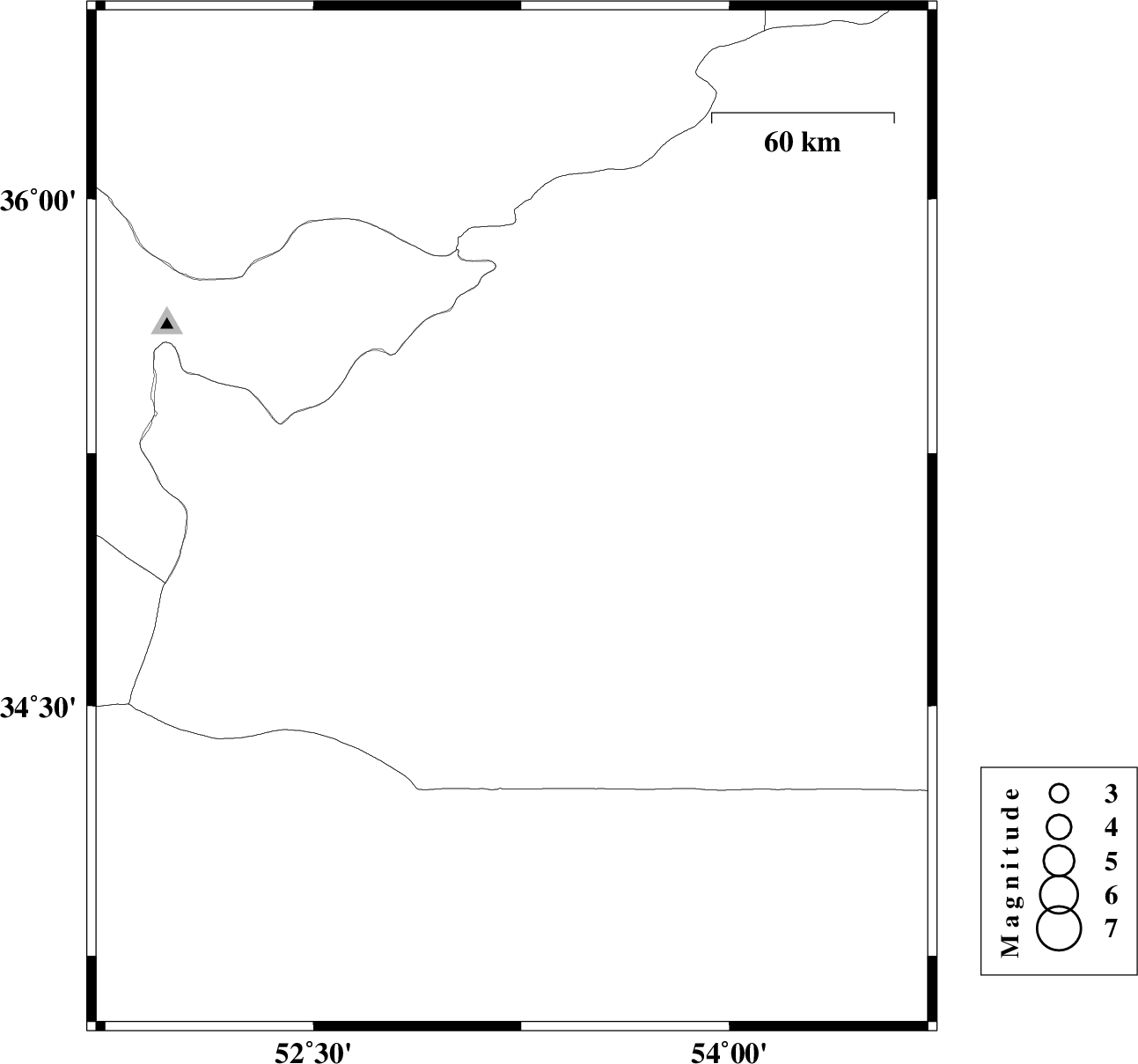 | 2015/11/05 | 23:21:30.3 | 02:51:30.3 | 35.052 | 53.216 | 18 | ML:2.8 | Semnan Province, 60 km South-West of Semnan | ||
