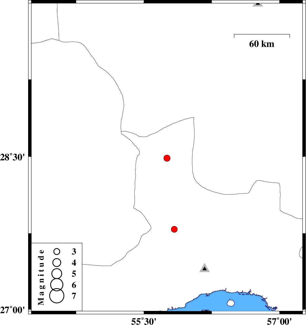 | 2015/11/11 | 10:27:01.8 | 13:57:01.8 | 27.79 | 55.836 | 15 | ML:3.1 | Hormozgan Province, 58 km South of Hajiabad |