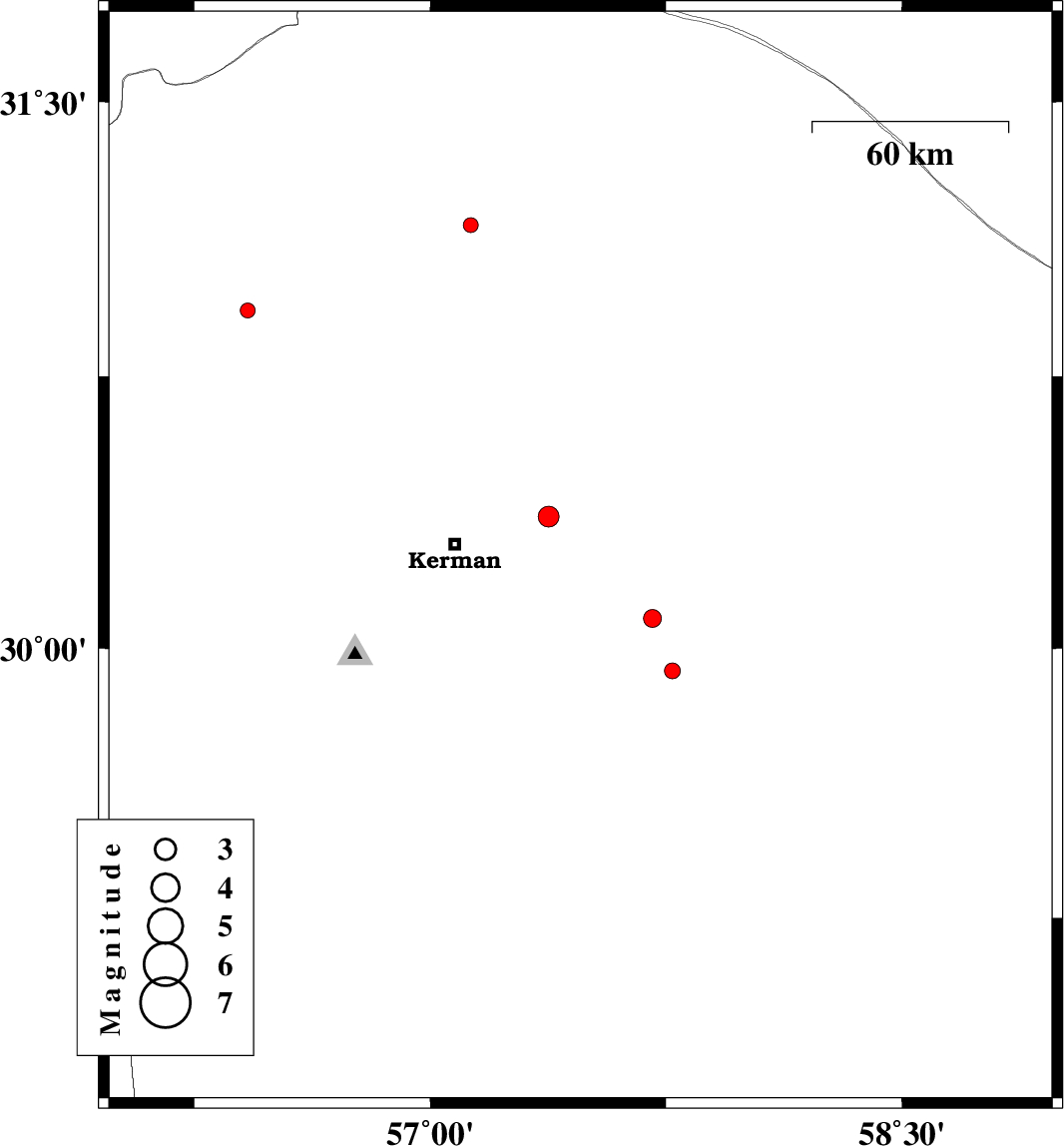 | 2015/12/01 | 09:03:21.3 | 12:33:21.3 | 30.248 | 57.478 | 14 | ML:3 | Kerman Province, 39 km -East of Kerman | ||
