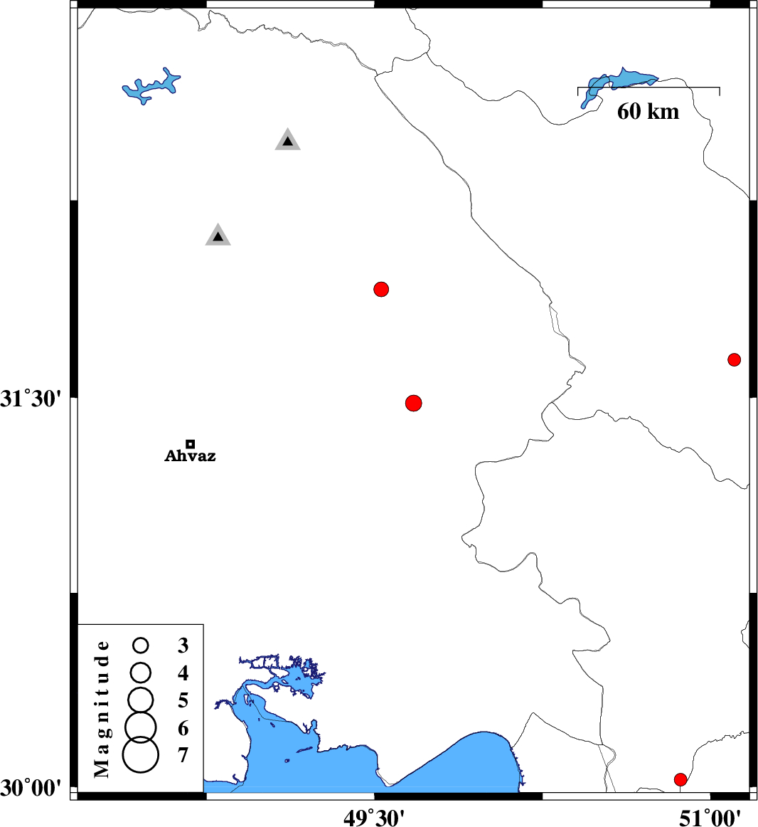 | 2015/12/03 | 19:48:37.3 | 23:18:37.3 | 31.478 | 49.674 | 16 | ML:3.2 | Khoozestan Province, 22 km -West of Bagh Malek | ||