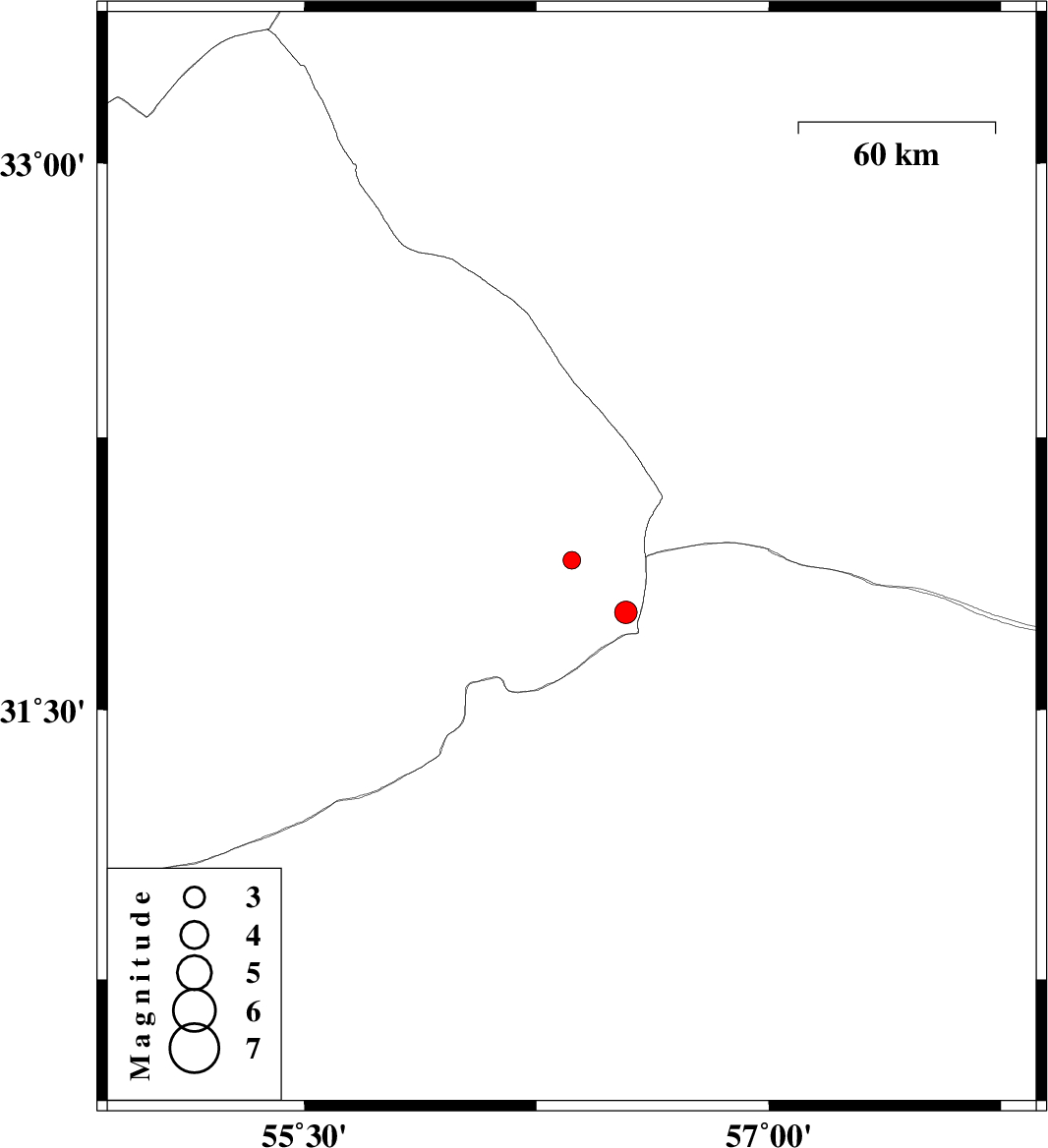 | 2015/12/01 | 13:59:20.4 | 17:29:20.4 | 31.769 | 56.539 | 14 | ML:3.2 | Yazd Province, 62 km North-West of Ravar |