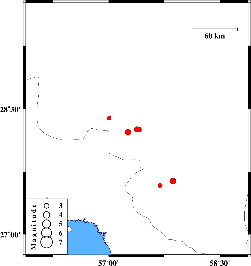 2015/11/09 01:37:42.6 05:07:42.6 27.6457.86915 ML:3.7 Kerman Province, 39 km South-East of Kahnuj