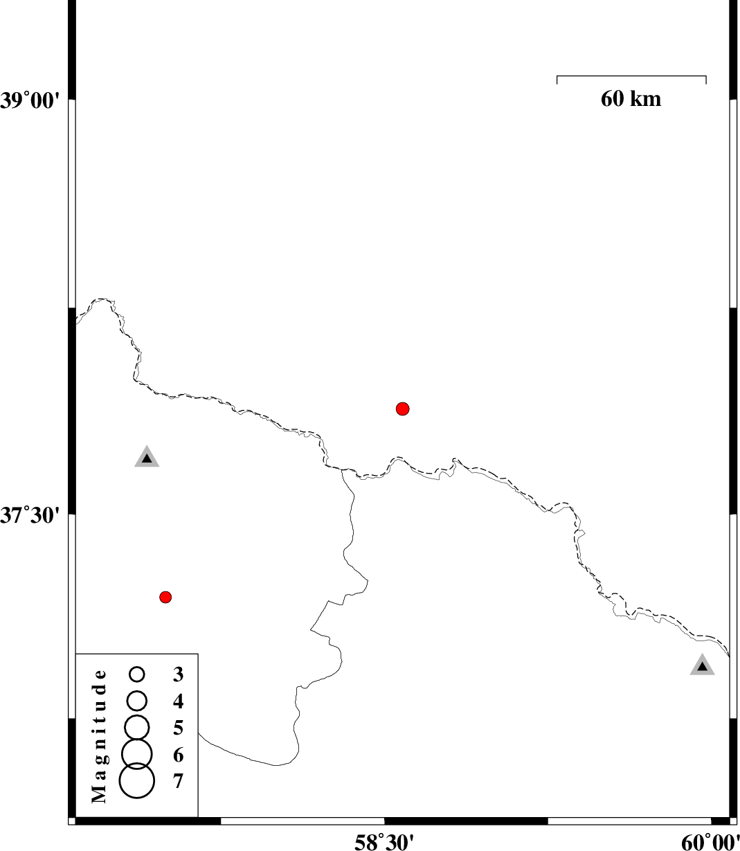 | 2015/12/19 | 19:10:05.4 | 22:40:05.4 | 37.884 | 58.583 | 15 | ML:2.7 | Turkmenistan, 19 km -East of Ashgabat | ||