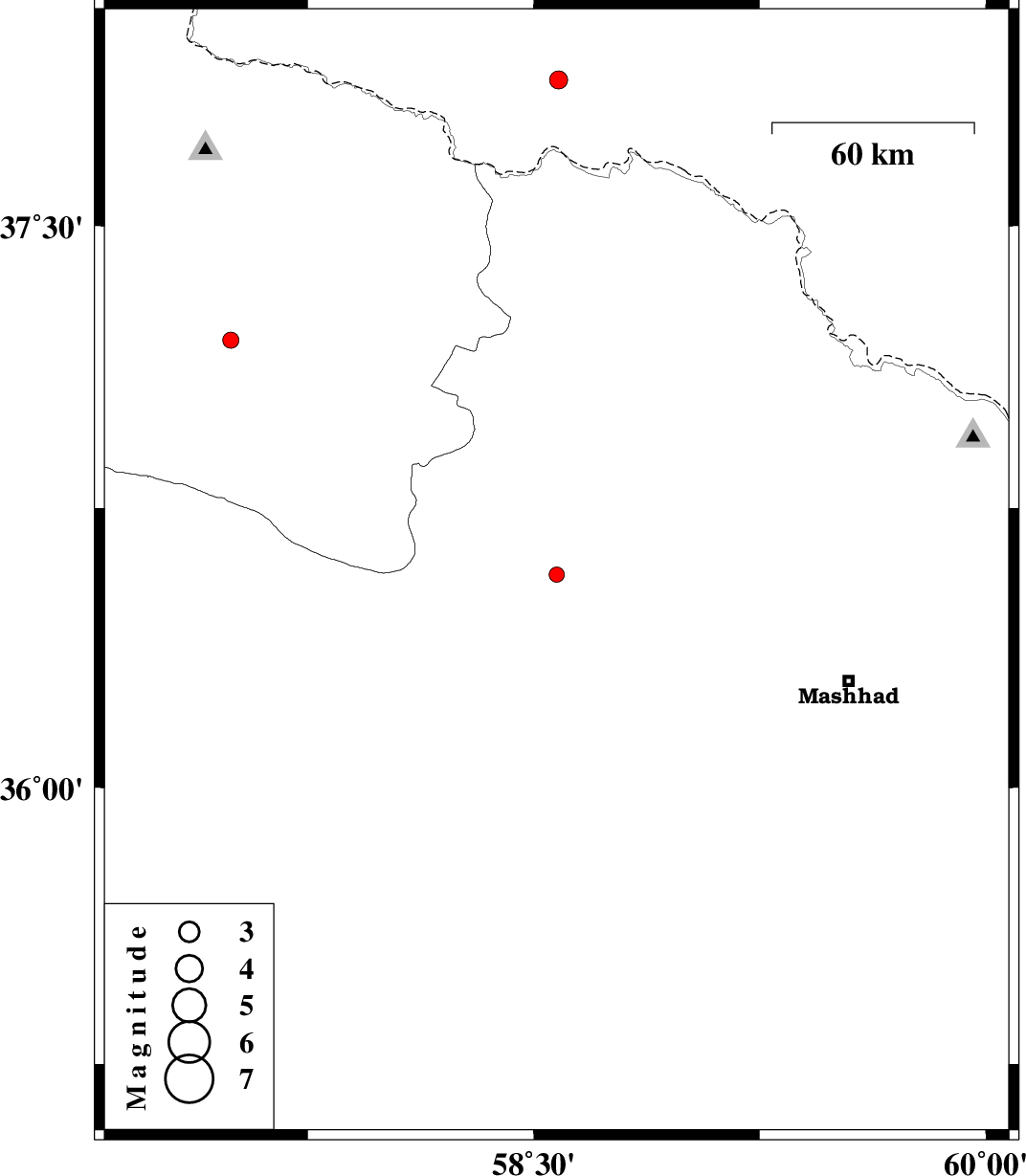 | 2015/12/19 | 19:10:05.4 | 22:40:05.4 | 37.884 | 58.583 | 15 | ML:2.7 | Turkmenistan, 19 km -East of Ashgabat | ||