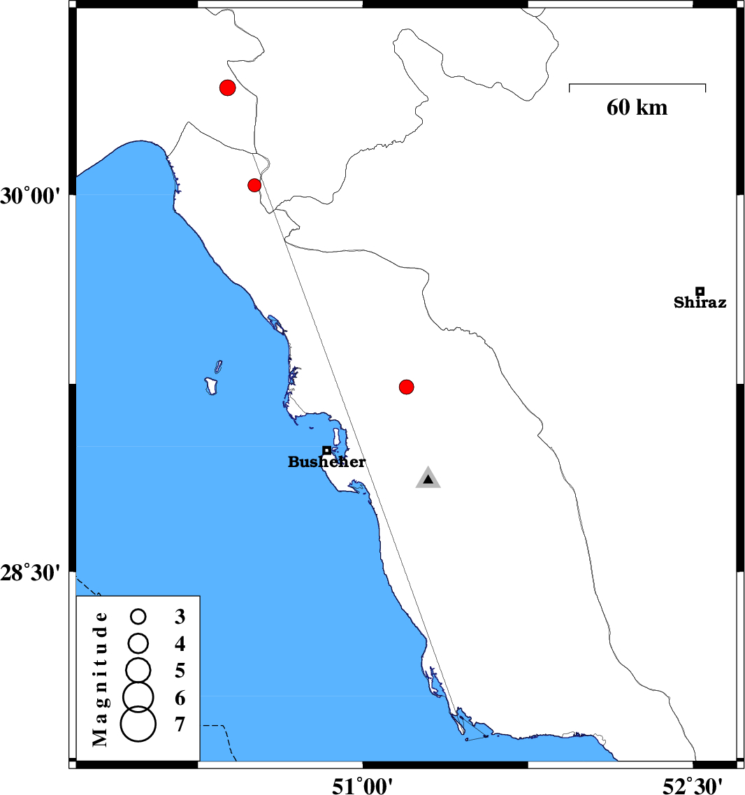 | 2015/12/31 | 12:42:11.0 | 16:12:11.0 | 29.237 | 51.198 | 15 | ML:3 | Bushehr Province, 3 km of Borazjan | ||