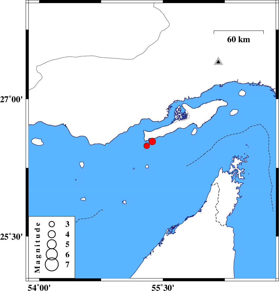 | 2016/01/01 | 23:17:30.3 | 02:47:30.3 | 26.491 | 55.303 | 15 | ML:3.3 | Persian Gulf, 45 km -East of Bandar-e lengeh |